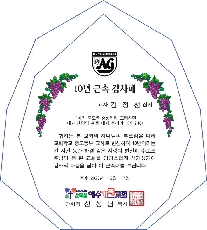 Á¤Àç¿î´Ô 20³â, 10³â ±Ù¼ÓÆÐ ½Ã¾ÈÀÔ´Ï´Ù.